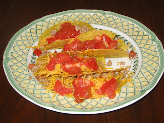 Spoon mixture into prepared taco shells and top with corn, olives, cheese and tomatoes. Green onions, black beans, sour cream, and slivered lettuce make nice additional toppings.